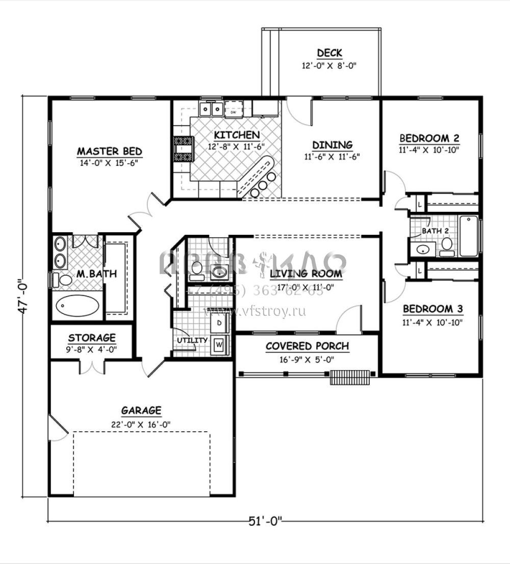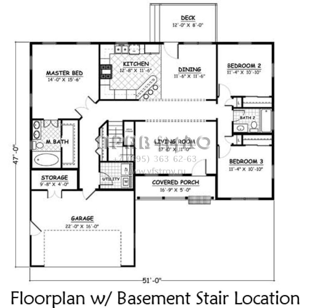 S5-132 (526-00015) Это иностранный проект, для которого требуется адаптация под нормы, действующие в Российской Федерации. Вы видите проект дома в стиле Ранчо. В этом доме сочетаются черты сельской постройки и аскетичность лофта. Внутри жильцы смогут проводить время с максимальным комфортом. Обратим внимание, что сейчас на планировках все размеры представлены в футах. Для перевода в метры вам необходимо значение в футах умножить на 0,3048.