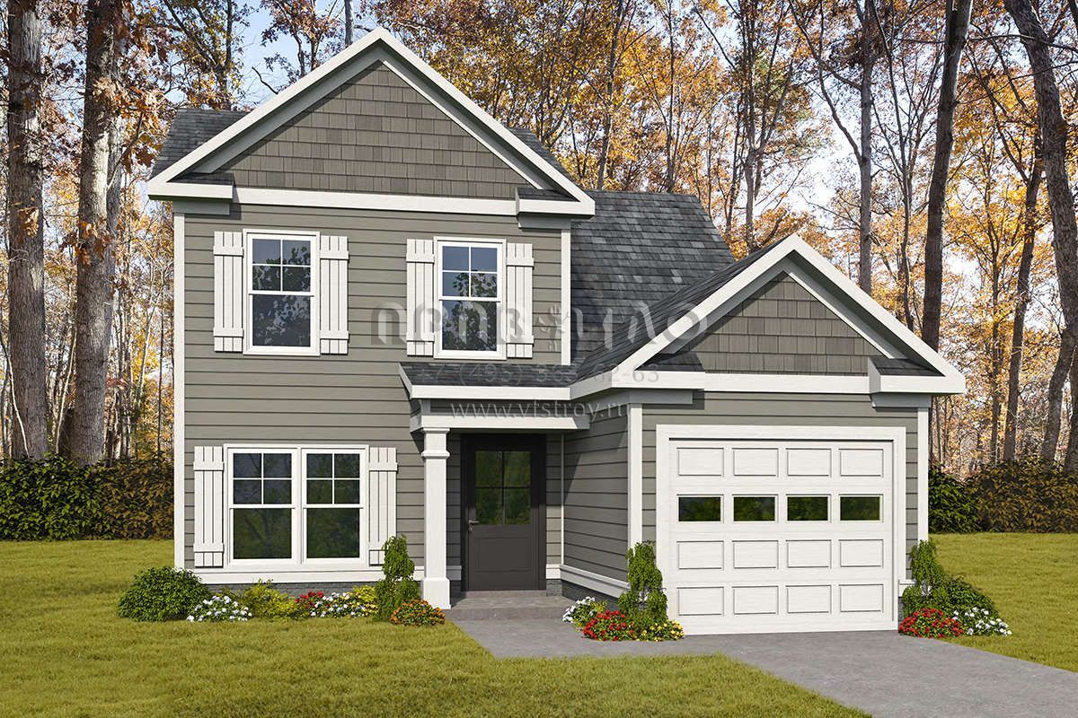 Проект двухэтажного дома с гаражом на одну машину в стиле Ранчо S5-132 (6082-00163)