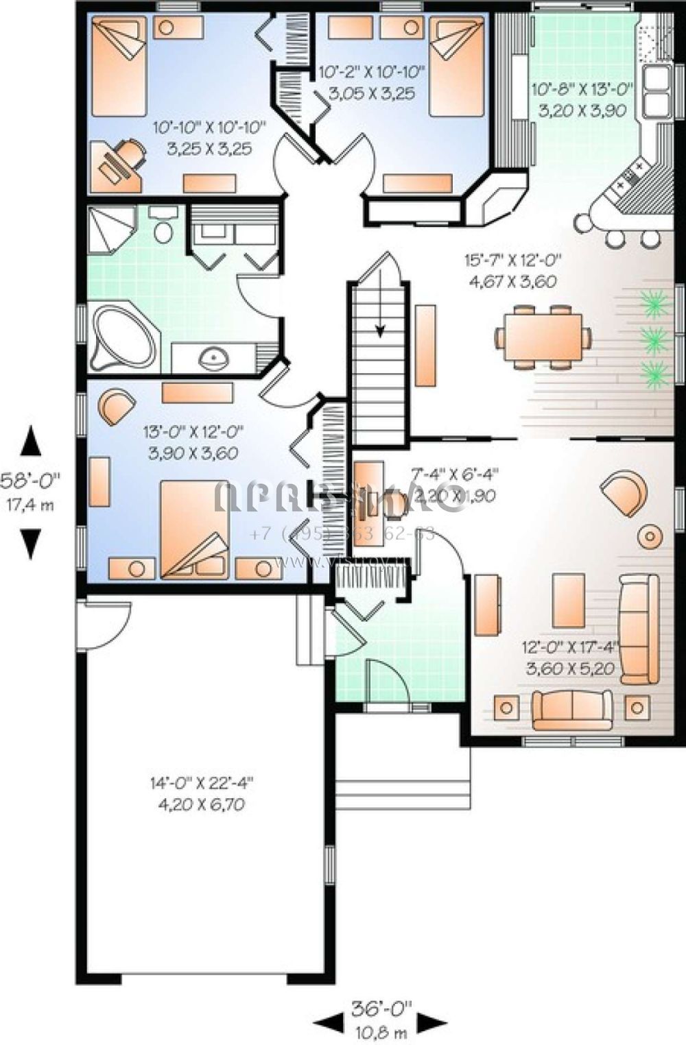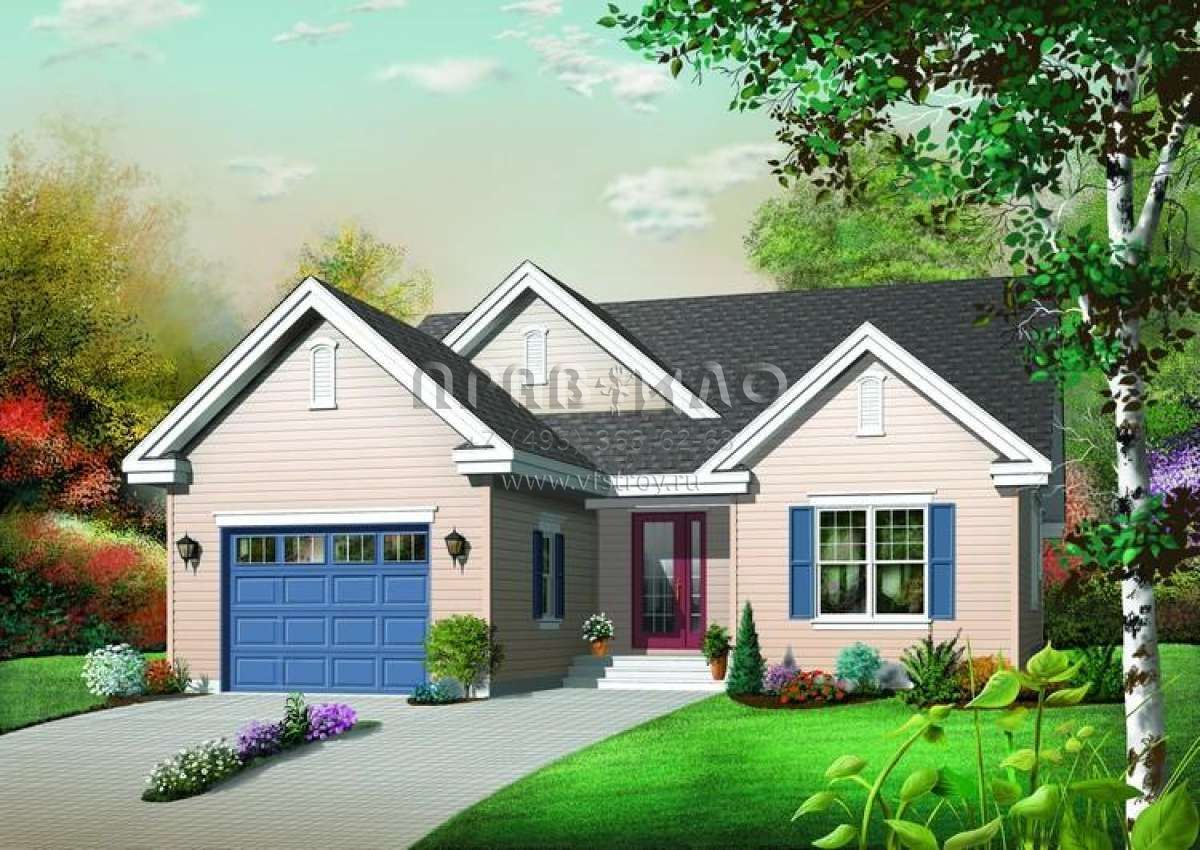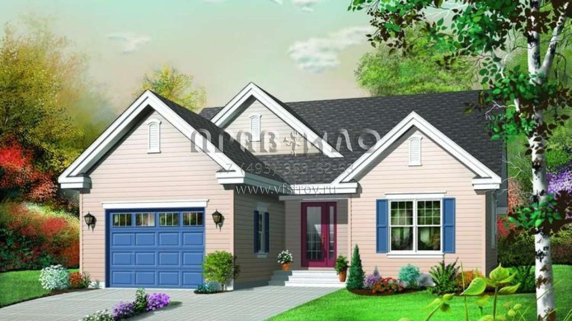 Проект одноэтажного дома с гаражом на одну машину в стиле Ранчо S5-133 (034-00638)