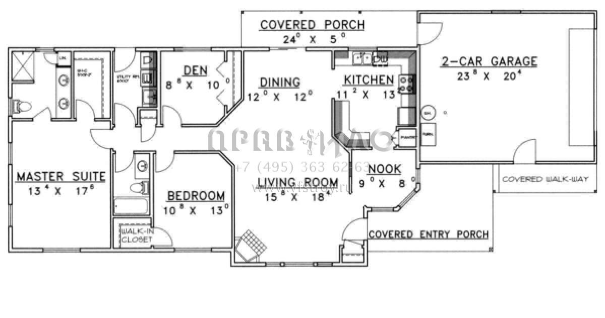 Проект одноэтажного дома с гаражом на две машины в стиле Ранчо S5-133 (039-00344)