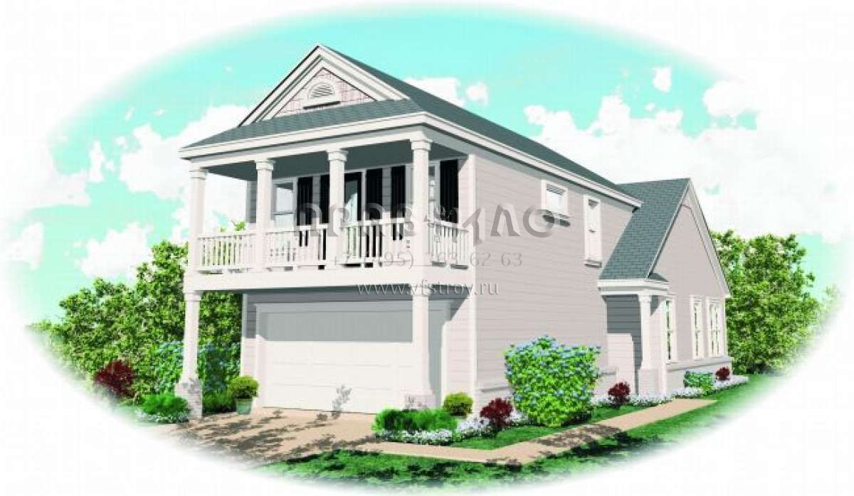 Это проект двухэтажного дома с гаражом на две машины жилой площадью 133 кв.м. Длина дома 20.4 м, ширина 7.3 м, высота 7.9 м. В доме две спальни и два санузла.