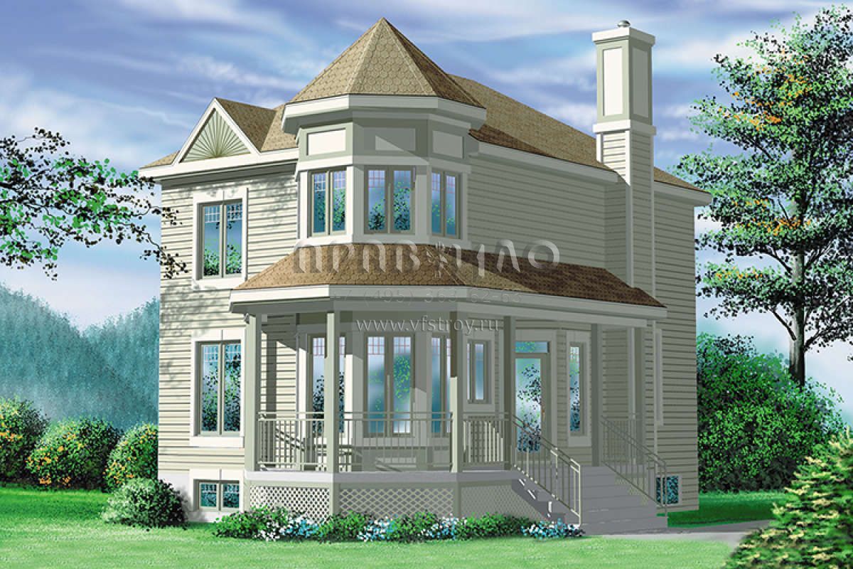 Это проект двухэтажного дома без гаража жилой площадью 133 кв.м. Длина дома 10.7 м, ширина 6.7 м, высота 9.1 м. В доме две спальни и один санузел.