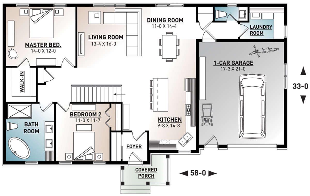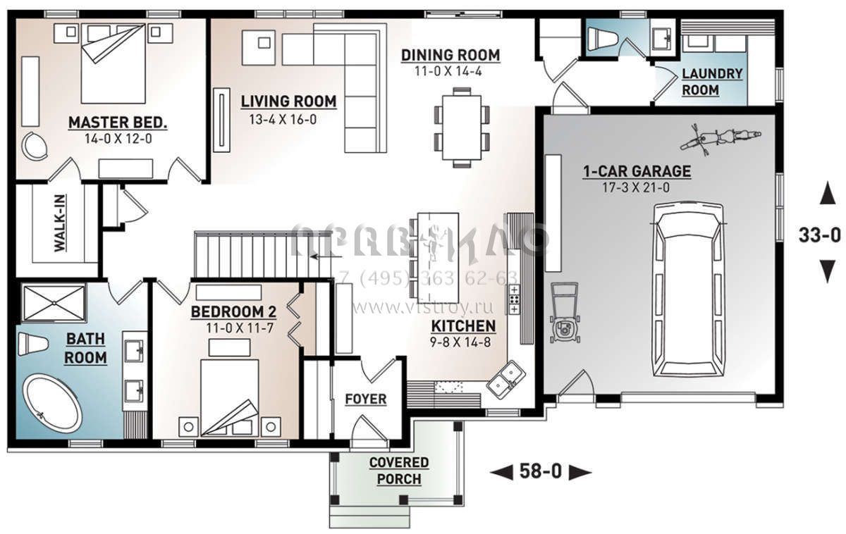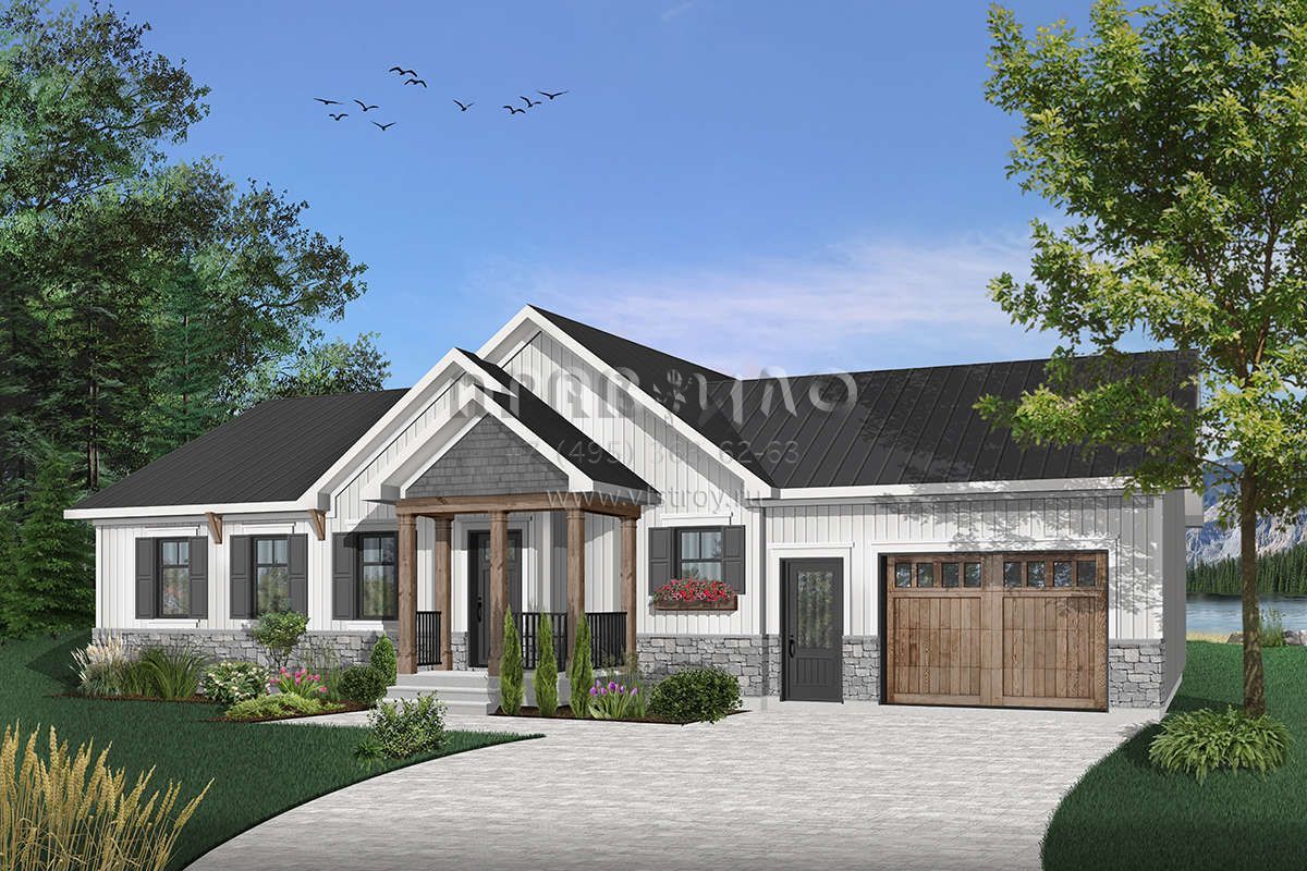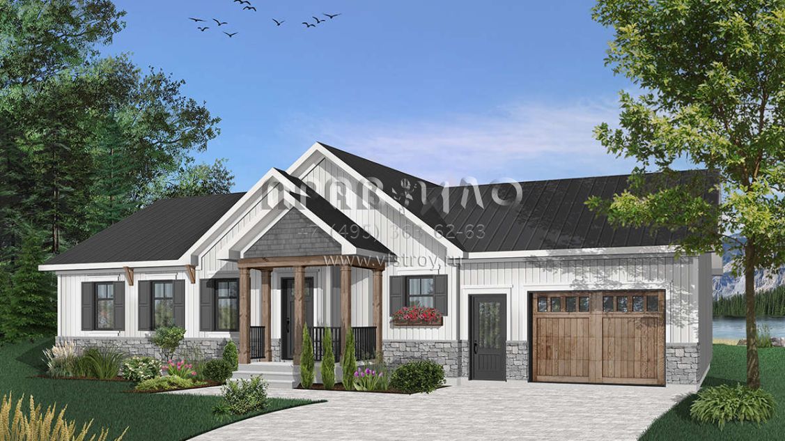 Проект одноэтажного дома с гаражом на одну машину в стиле Ранчо S5-134 (034-01082)