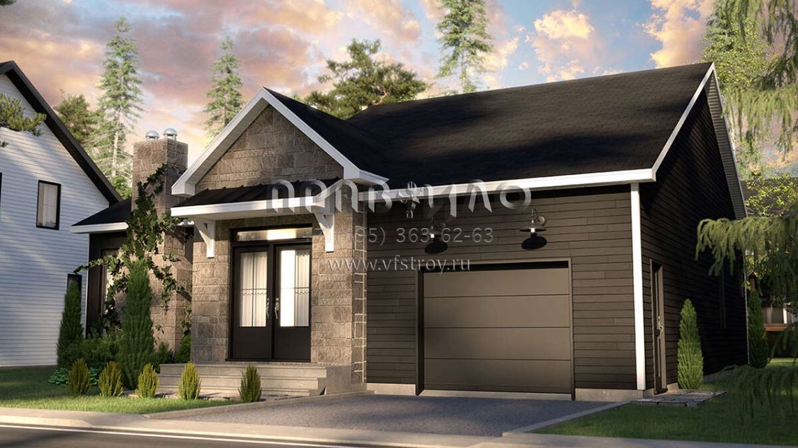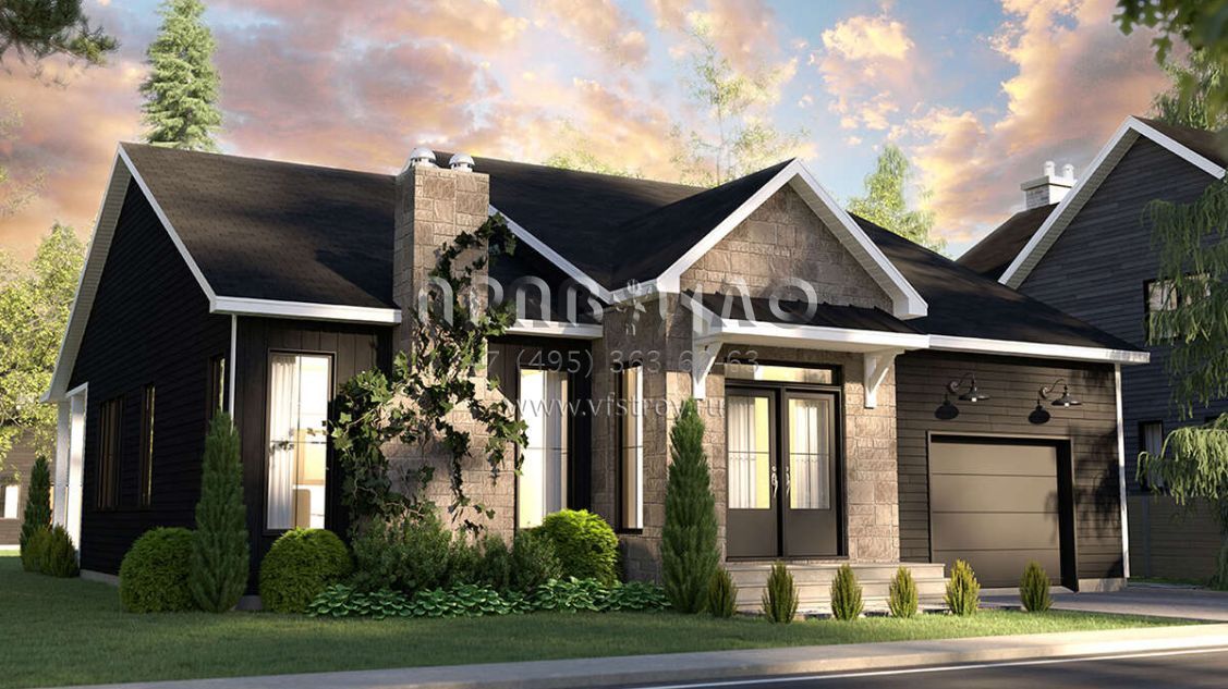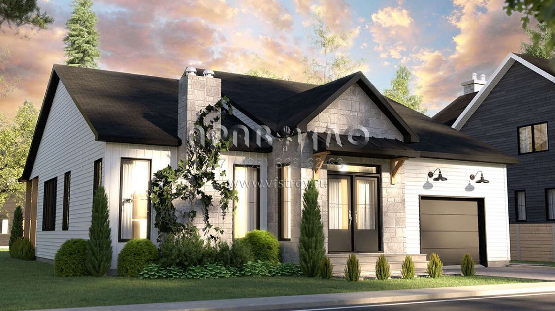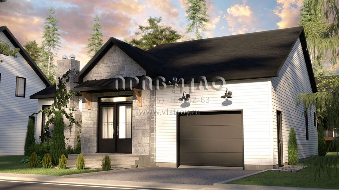 Проект одноэтажного дома с гаражом на одну машину в стиле Ранчо S5-134 (034-01282)