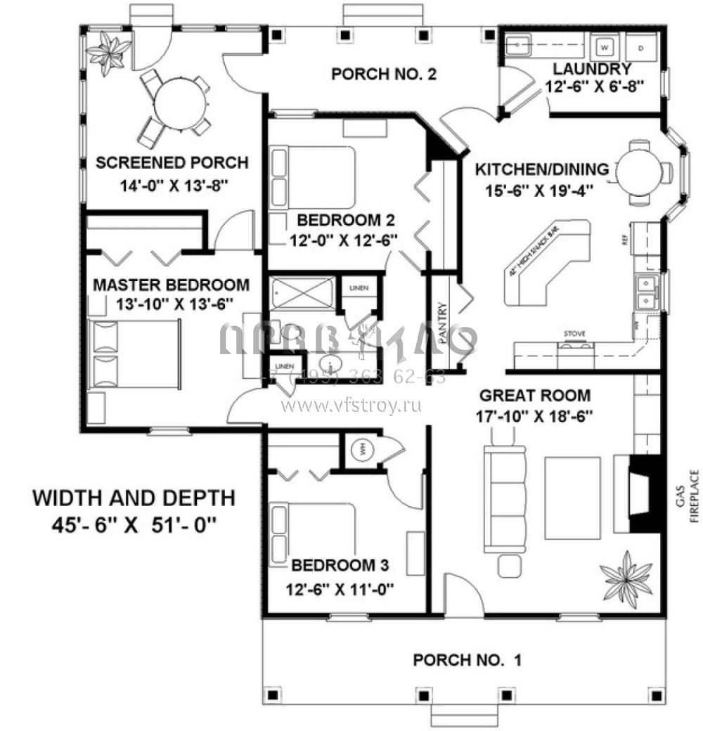 Проект одноэтажного дома без гаража в стиле Ранчо S5-134 (1776-00018)
