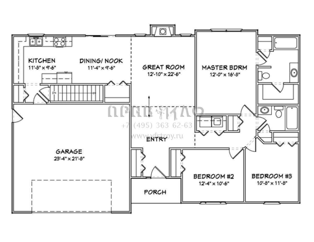 Проект одноэтажного дома с гаражом на две машины в стиле Ранчо S5-134 (849-00098)
