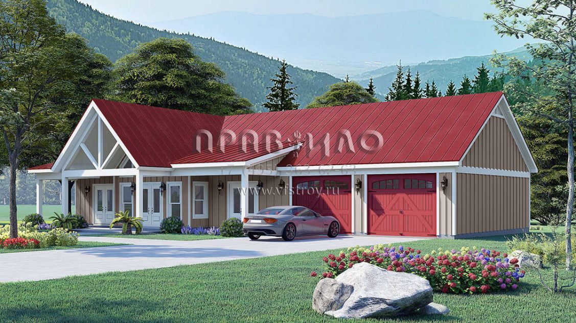 Проект одноэтажного дома с гаражом на две машины в американском стиле S5-134 (940-00990)