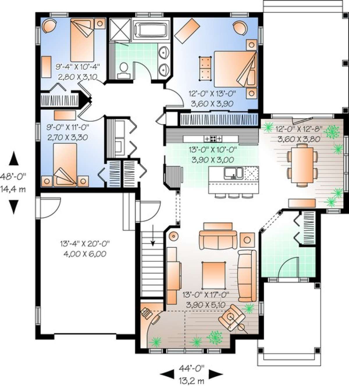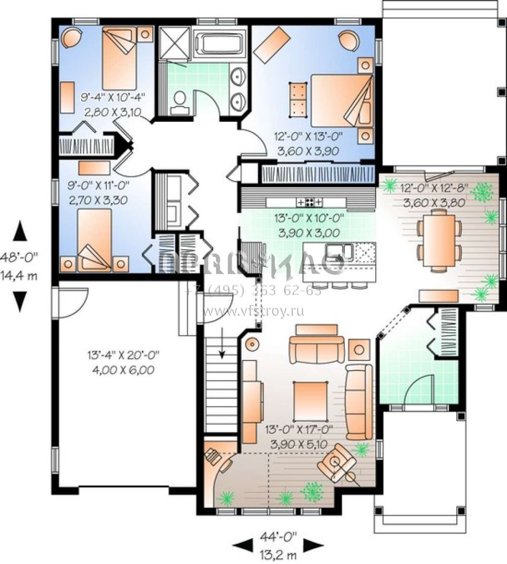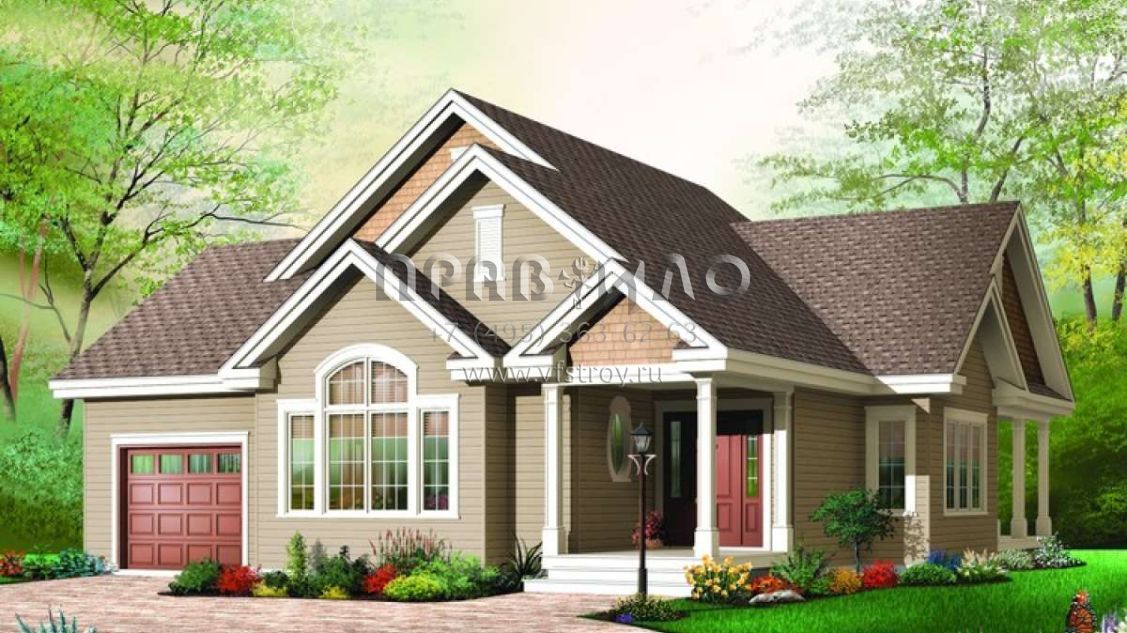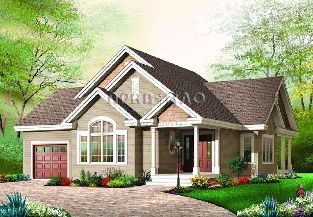 Проект одноэтажного дома с гаражом на одну машину в английском стиле S5-135 (034-00665)