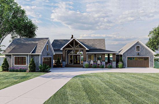 Проект одноэтажного дома с гаражом на две машины в американском стиле S5-135 (036-00178)