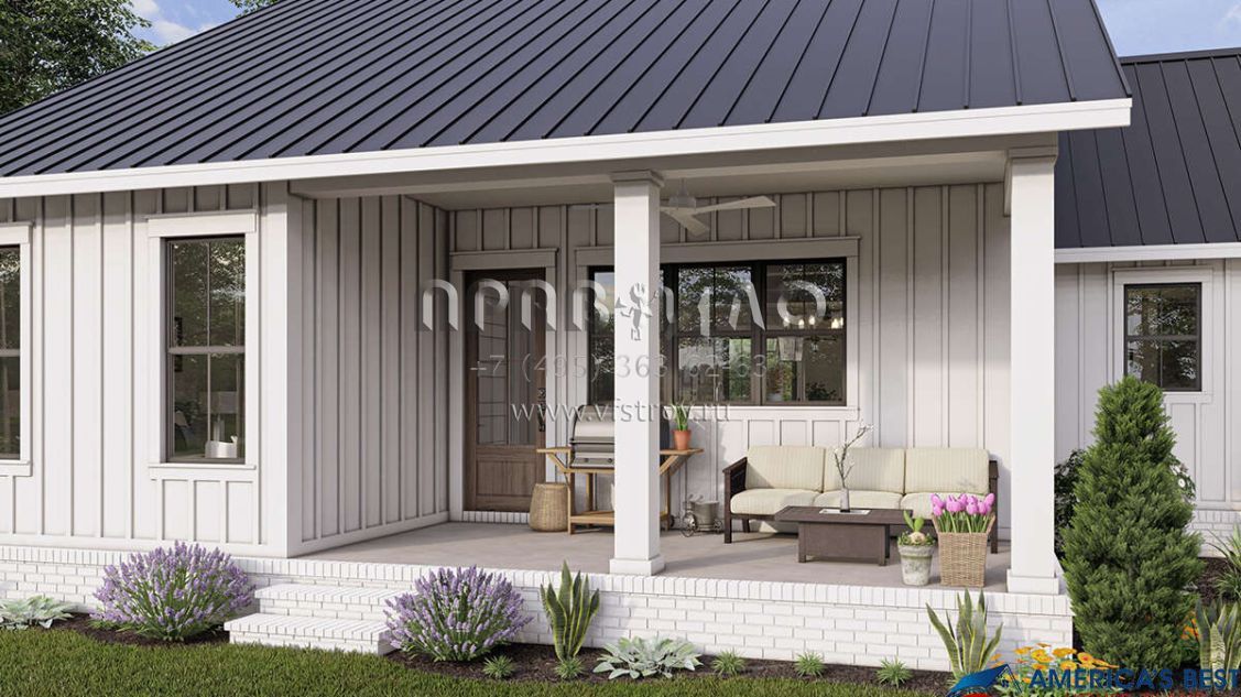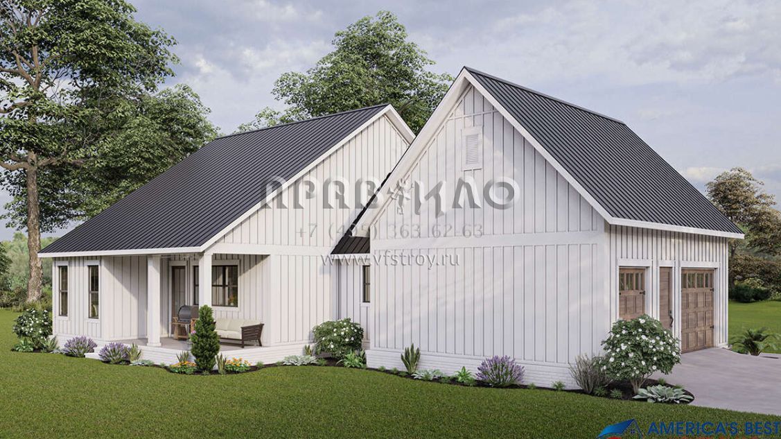 Проект одноэтажного дома с гаражом на одну машину в современном стиле S5-135 (041-00258)