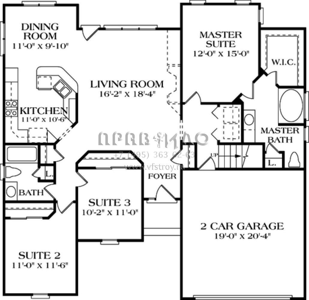 Проект одноэтажного дома с гаражом на две машины в стиле Ранчо S5-135 (3323-00020)