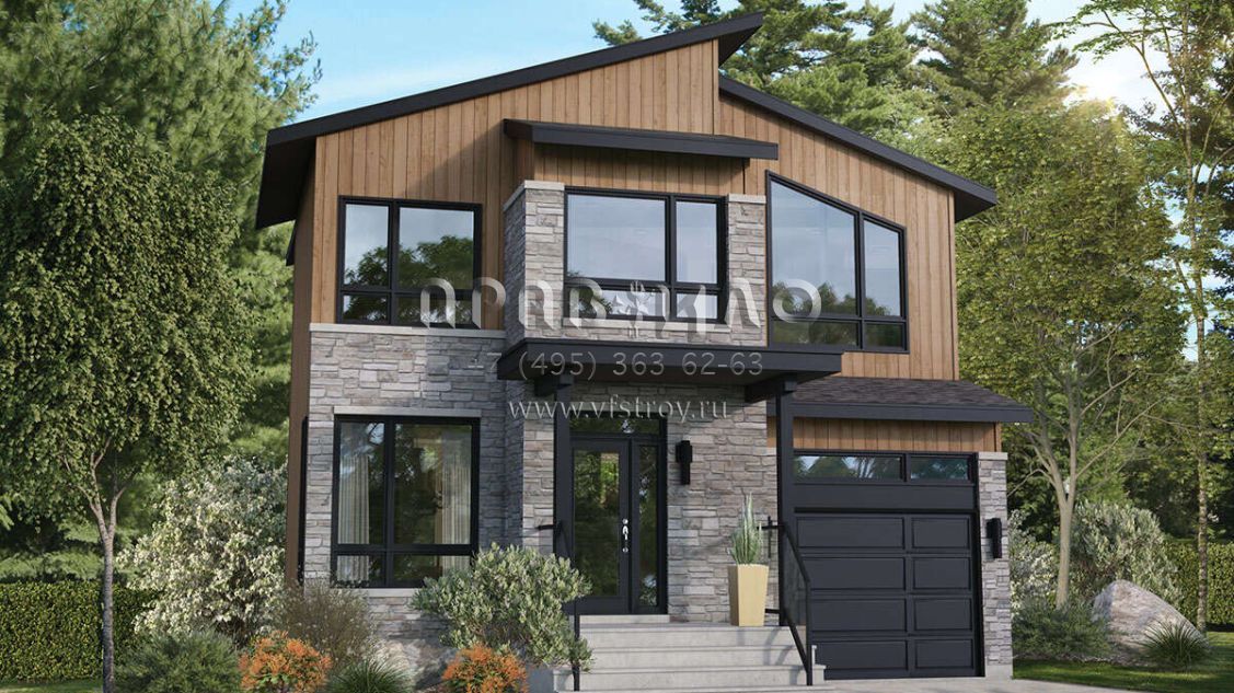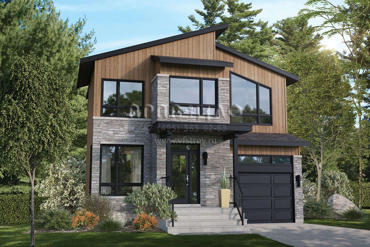 Проект двухэтажного дома с гаражом на одну машину в современном стиле S5-135 (6146-00514)