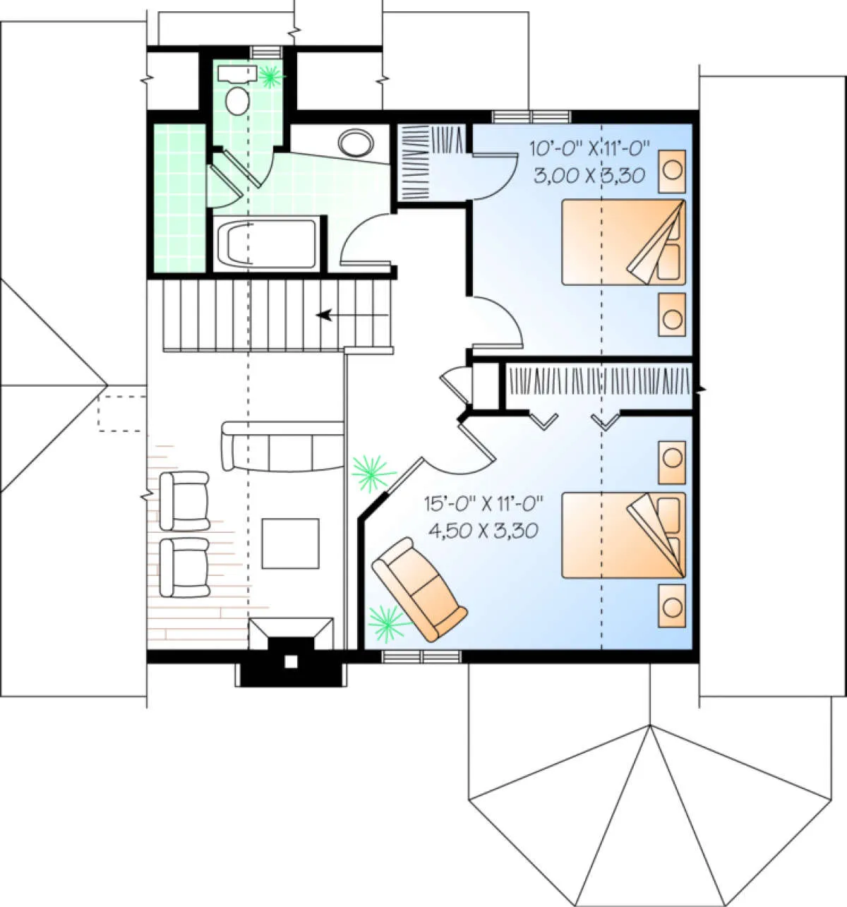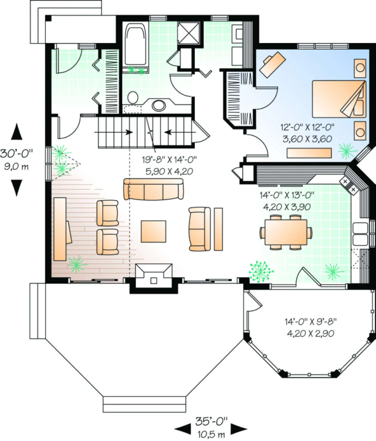 S5-136 (034-00068) Это иностранный проект, для которого требуется адаптация под нормы, действующие в Российской Федерации. Вы видите проект дома в современном стиле. В этом доме сочетаются черты сельской постройки и аскетичность лофта. Внутри жильцы смогут проводить время с максимальным комфортом. Обратим внимание, что сейчас на планировках все размеры представлены в футах. Для перевода в метры вам необходимо значение в футах умножить на 0,3048.