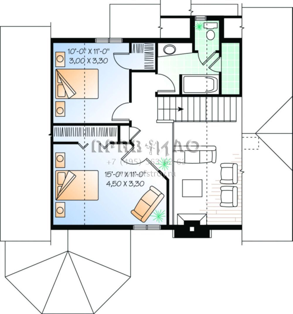 | Возможный материал кровли | металлочерепица, гибкая черепица, керамическая черепица, композитная черепица, цементно-песчаная черепица, фальцевая кровля |