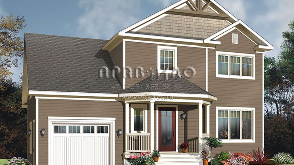 Проект двухэтажного дома с гаражом на одну машину в стиле Ранчо S5-136 (034-01098)