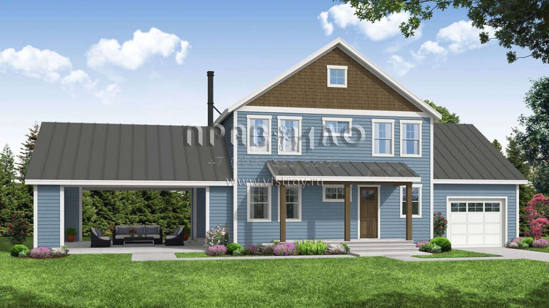 Проект двухэтажного дома с гаражом на одну машину в стиле Ранчо S5-136 (035-01029)