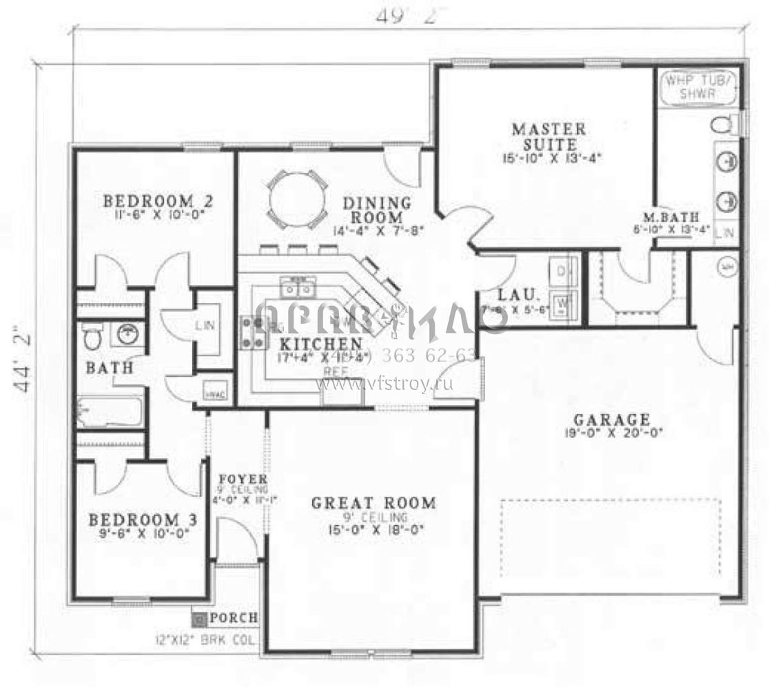 Проект одноэтажного дома с гаражом на две машины в стиле Ранчо S5-136 (110-00286)