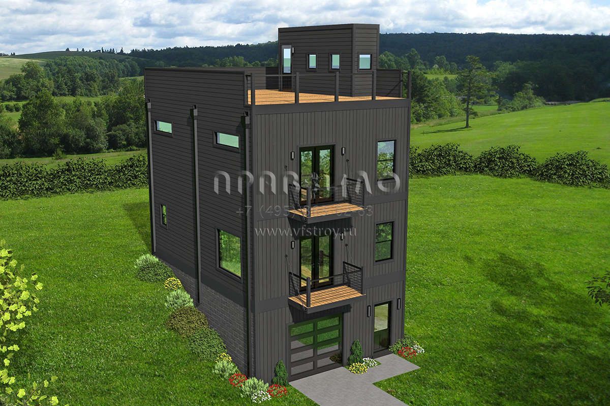 Проект трехэтажного дома с гаражом на одну машину в современном стиле S5-136 (940-00196)