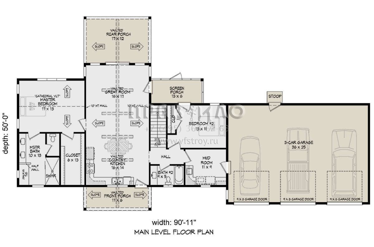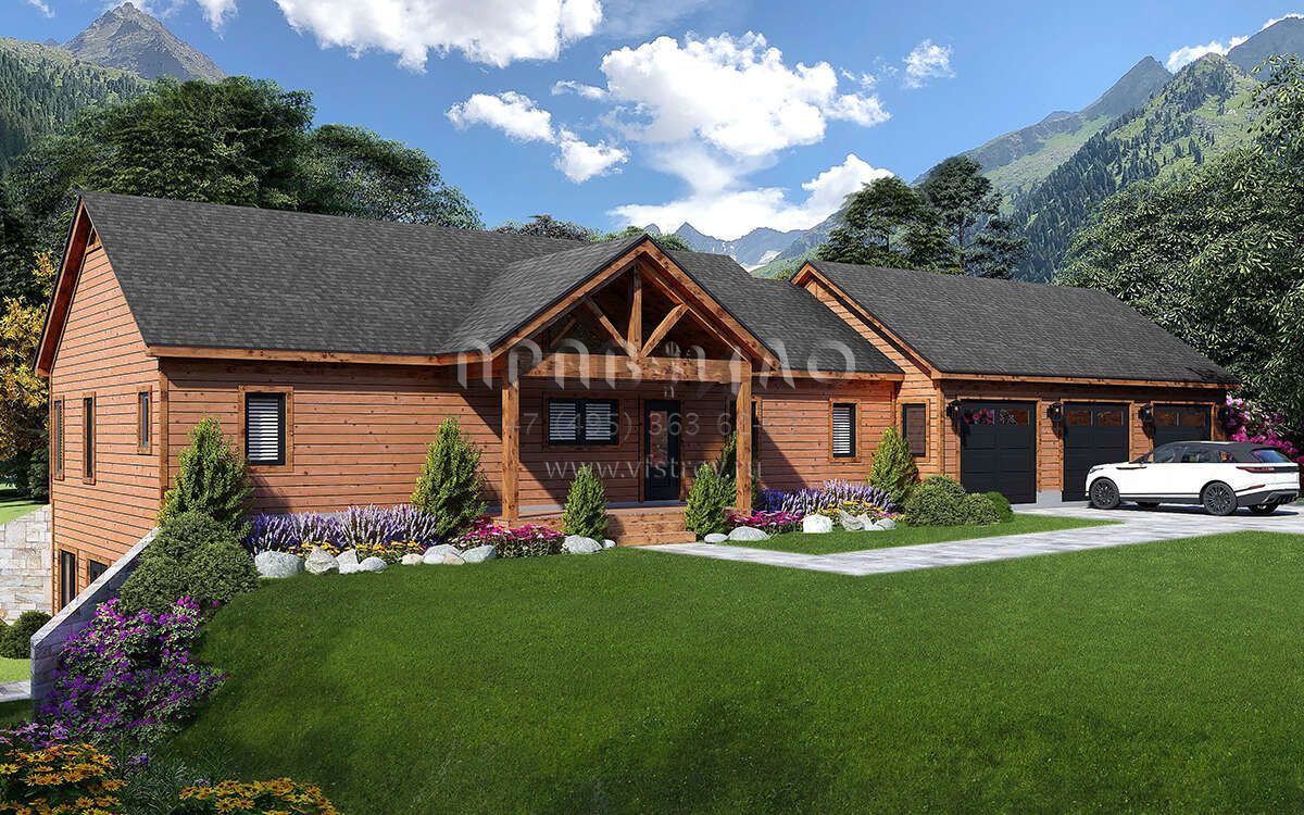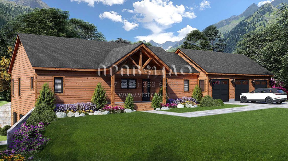 Проект одноэтажного дома с гаражом на три и более машин в стиле Шале S5-136 (940-00724)