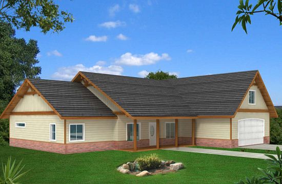 Проект одноэтажного дома с гаражом на две машины в стиле Ранчо S5-136 (957-00064)