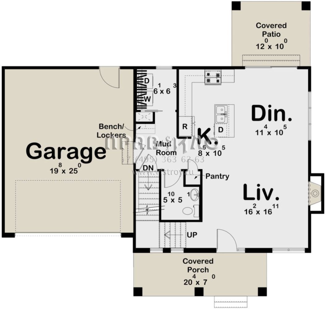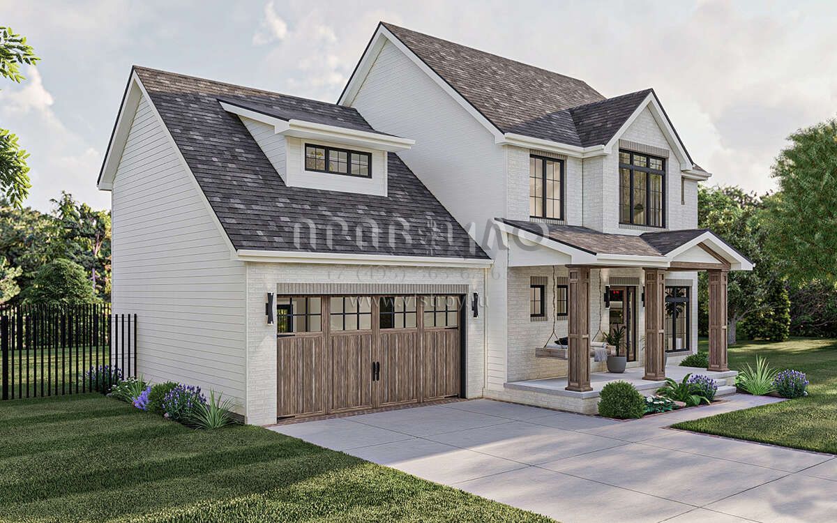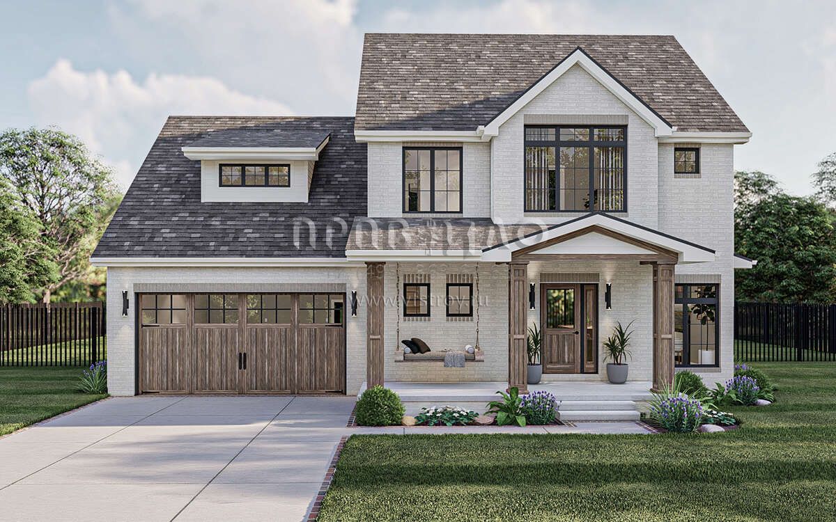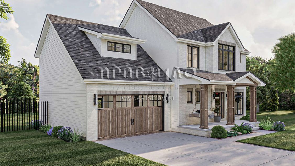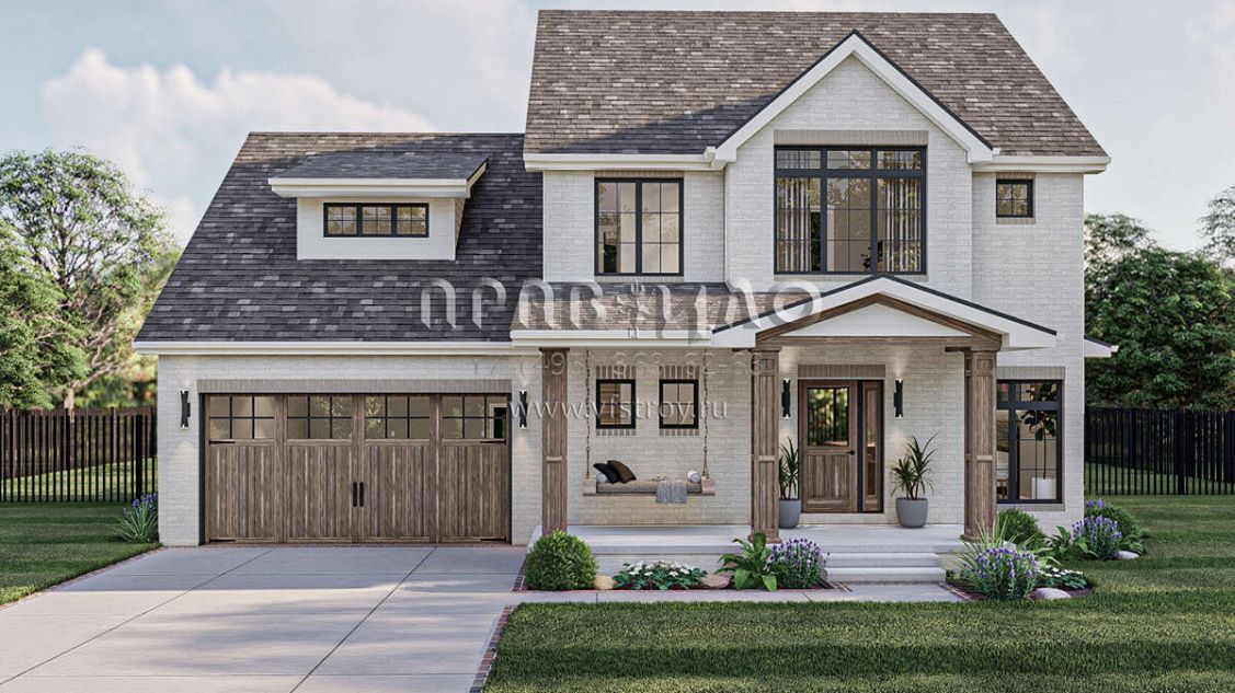 Проект двухэтажного дома с гаражом на две машины в стиле Ранчо S5-136 (963-00839)