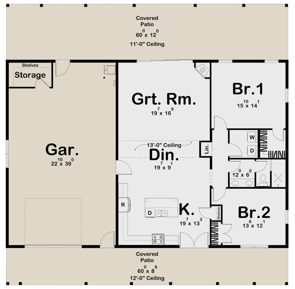 Проект одноэтажного дома с гаражом на одну машину в стиле БарнХаус S5-136 (963-00841)