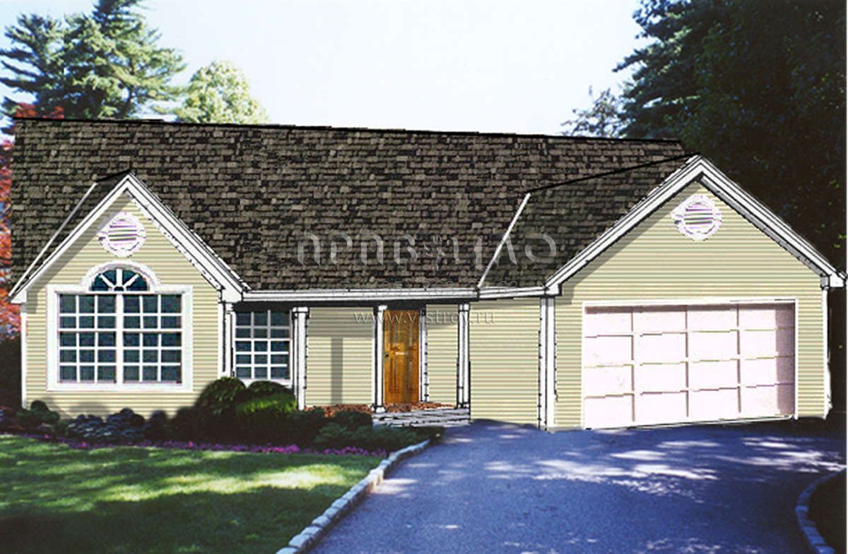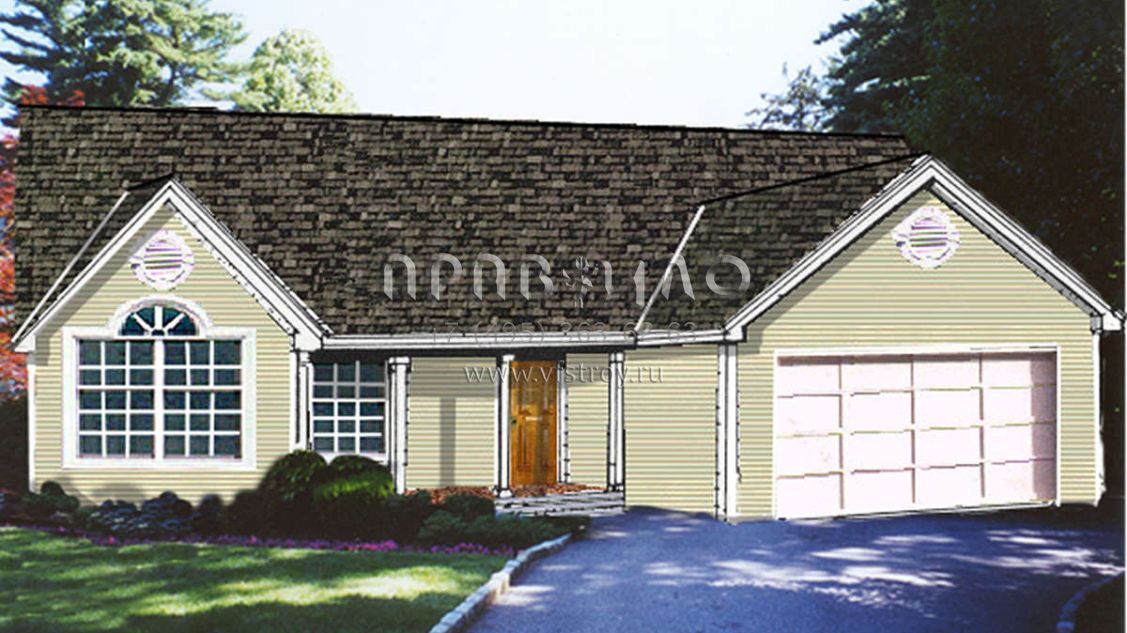 Это проект одноэтажного дома с гаражом на две машины жилой площадью 137 кв.м. Длина дома 14.6 м, ширина 16.5 м, высота 6.4 м. В доме три спальни и два санузла.