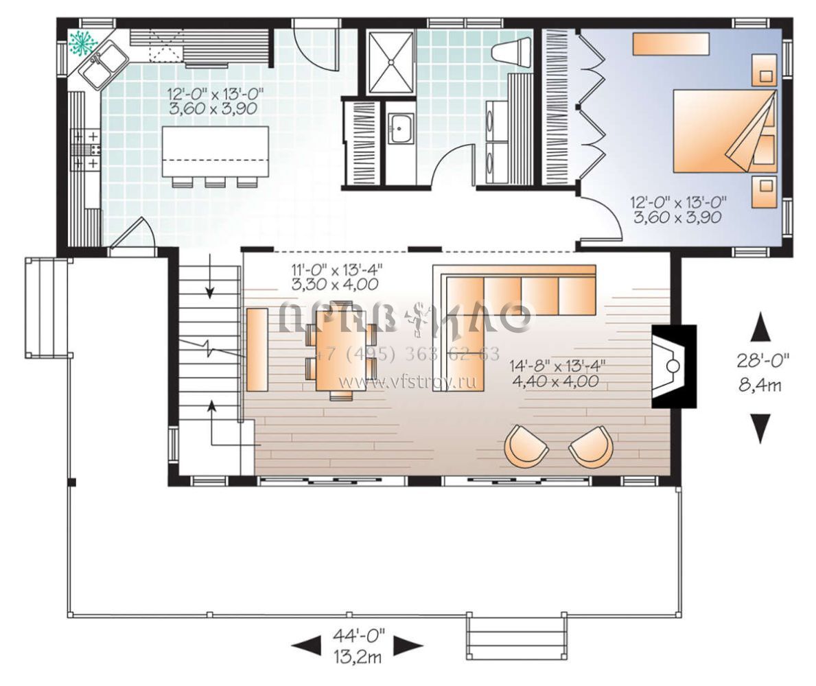 S5-137 (034-01200) Это иностранный проект, для которого требуется адаптация под нормы, действующие в Российской Федерации. Вы видите проект дома в современном стиле. В этом доме сочетаются черты сельской постройки и аскетичность лофта. Внутри жильцы смогут проводить время с максимальным комфортом. Обратим внимание, что сейчас на планировках все размеры представлены в футах. Для перевода в метры вам необходимо значение в футах умножить на 0,3048.