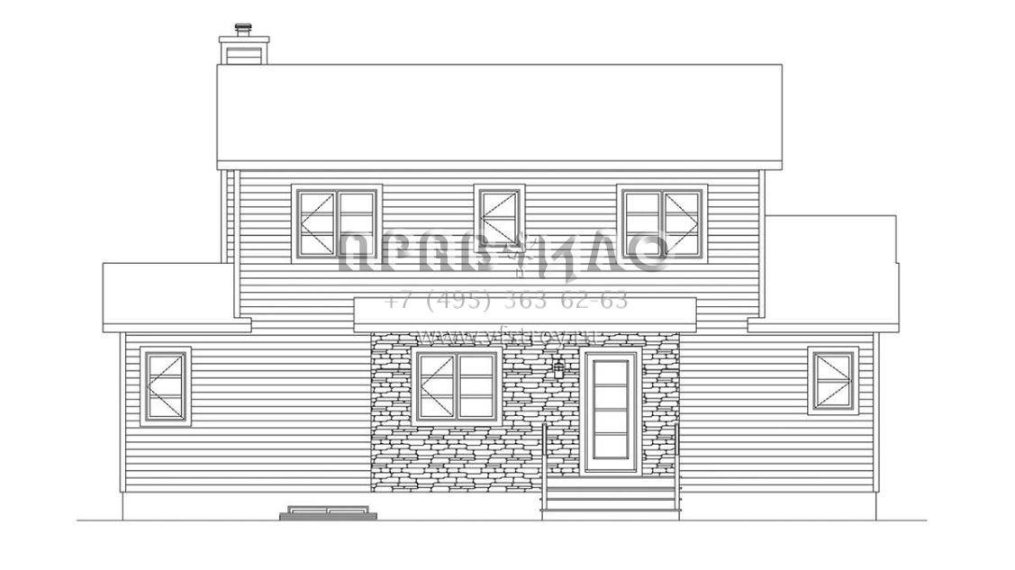 Двухэтажный проект дома позволяет рационально распорядиться площадью участка небольшого размера или узкой формы. На первом этаже находятся общие комнаты (гостиная/столовая, кухня, подсобные и технические помещения), на втором — спальни членов семьи.
