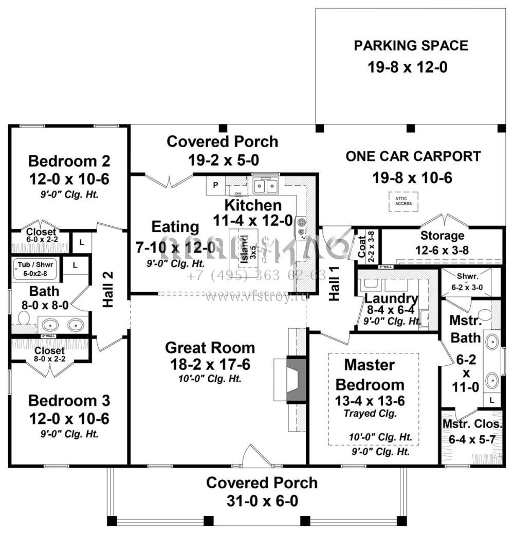 Проект одноэтажного дома с гаражом на две машины в стиле Ранчо S5-137 (348-00284)