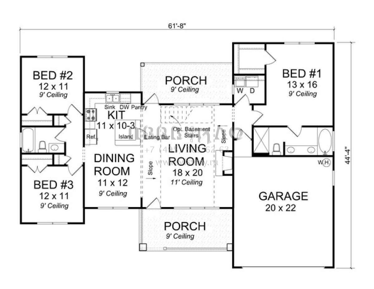 Проект одноэтажного дома с гаражом на две машины в стиле Ранчо S5-137 (4848-00004)