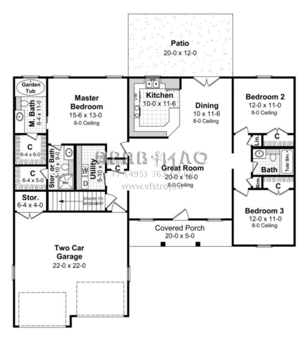 S5-138 (348-00016) Это иностранный проект, для которого требуется адаптация под нормы, действующие в Российской Федерации. Вы видите проект дома в стиле Ранчо. В этом доме сочетаются черты сельской постройки и аскетичность лофта. Внутри жильцы смогут проводить время с максимальным комфортом. Обратим внимание, что сейчас на планировках все размеры представлены в футах. Для перевода в метры вам необходимо значение в футах умножить на 0,3048.