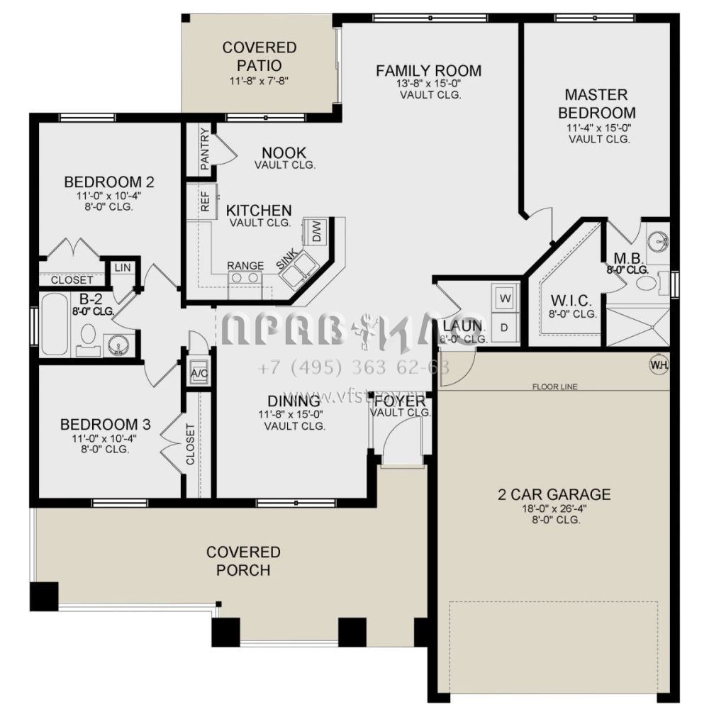 Проект одноэтажного дома с гаражом на две машины в стиле Ранчо S5-138 (3978-00220)