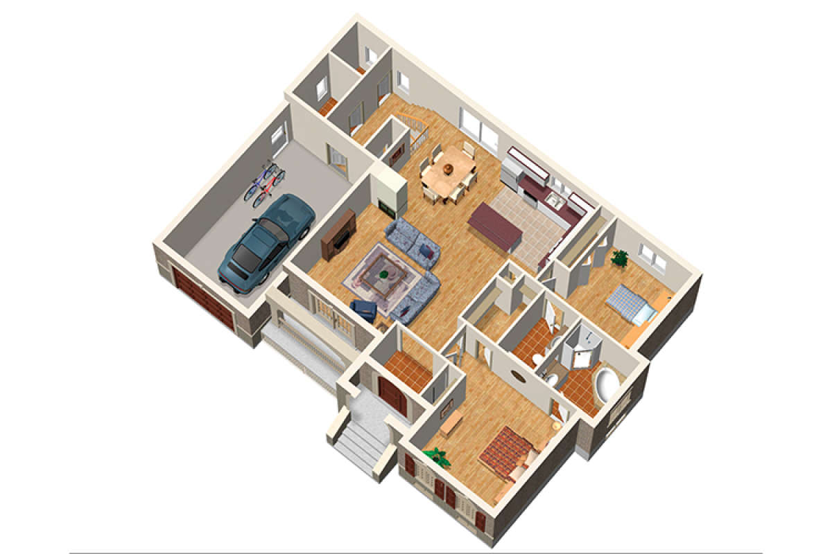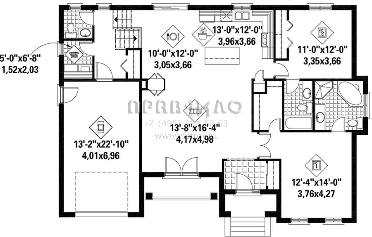 Проект одноэтажного дома с гаражом на одну машину в стиле Ранчо S5-138 (6146-00340)