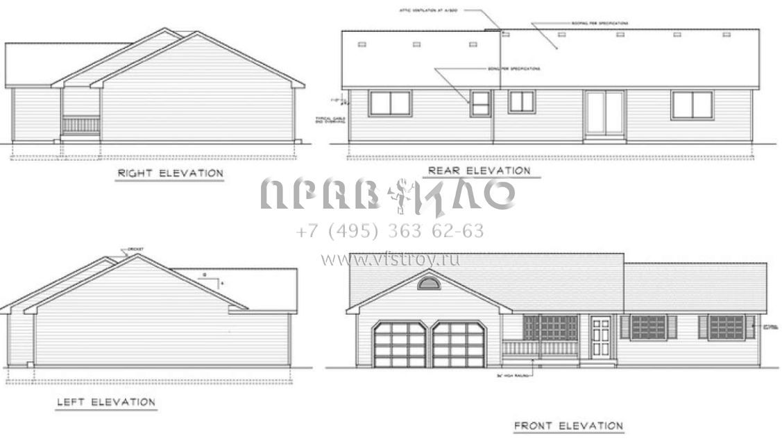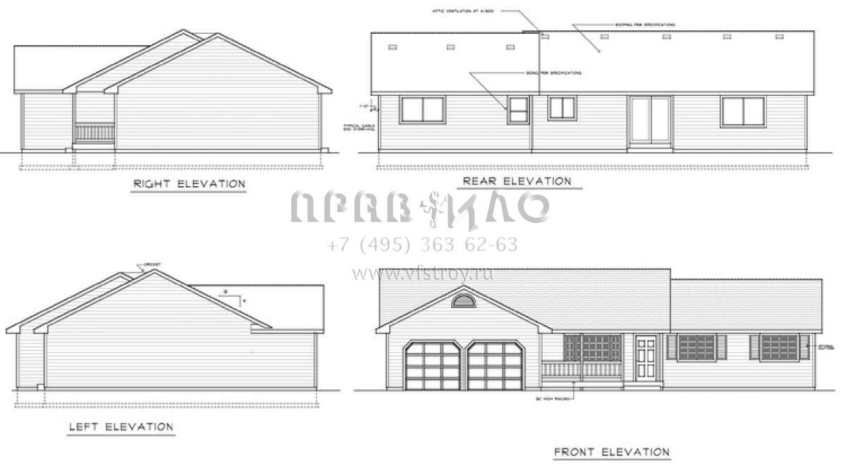 Проект одноэтажного дома с гаражом на две машины в стиле Ранчо S5-138 (692-00111)