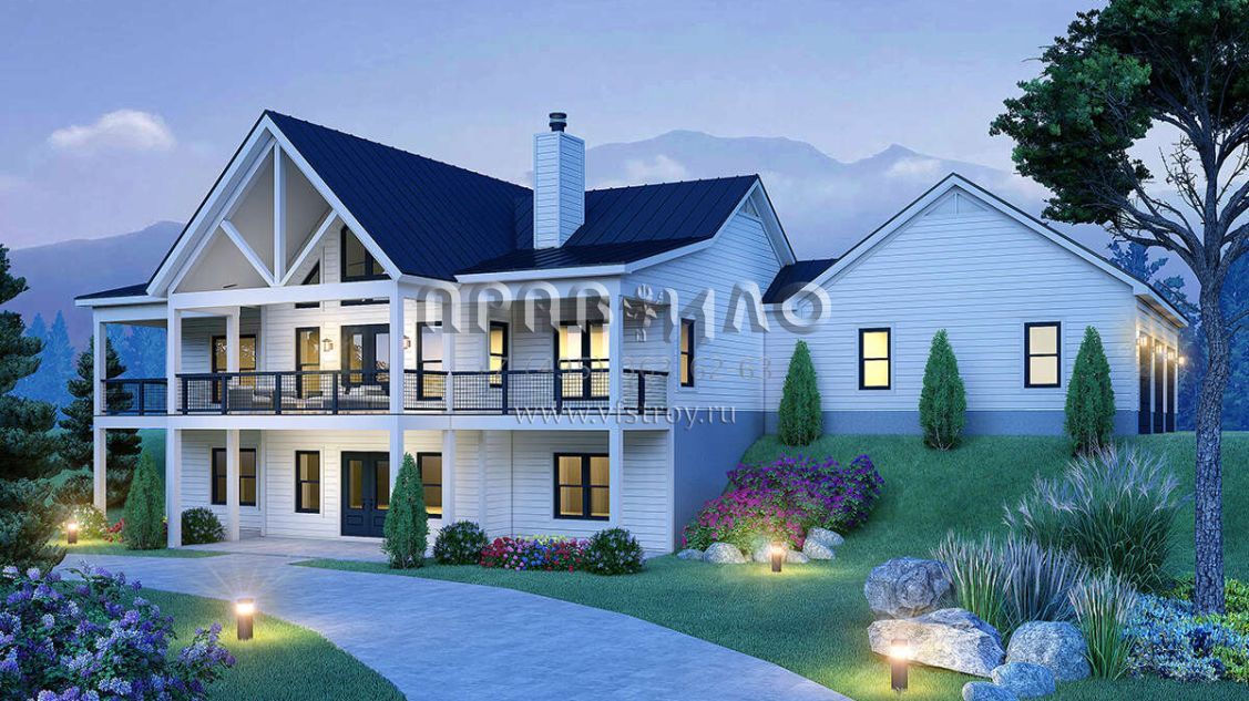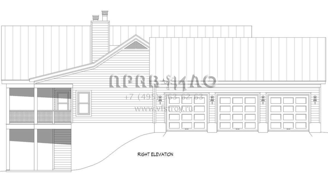 Проект одноэтажного дома с гаражом на три и более машин в американском стиле S5-138 (940-00988)