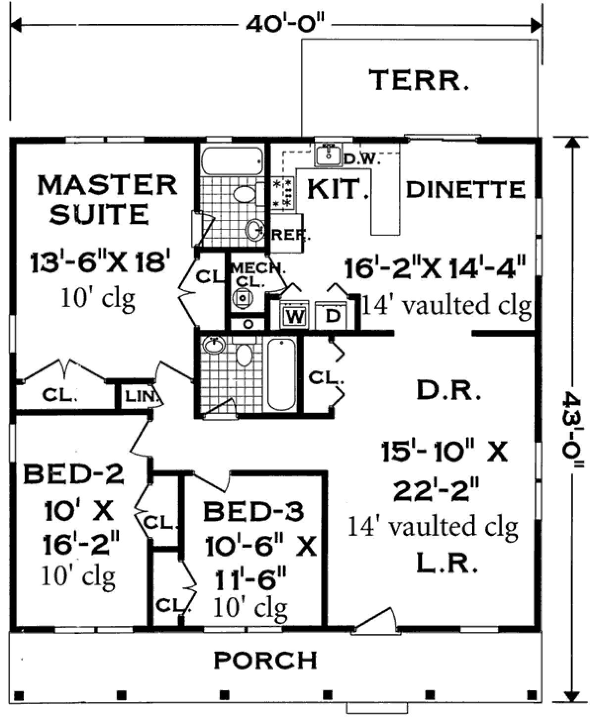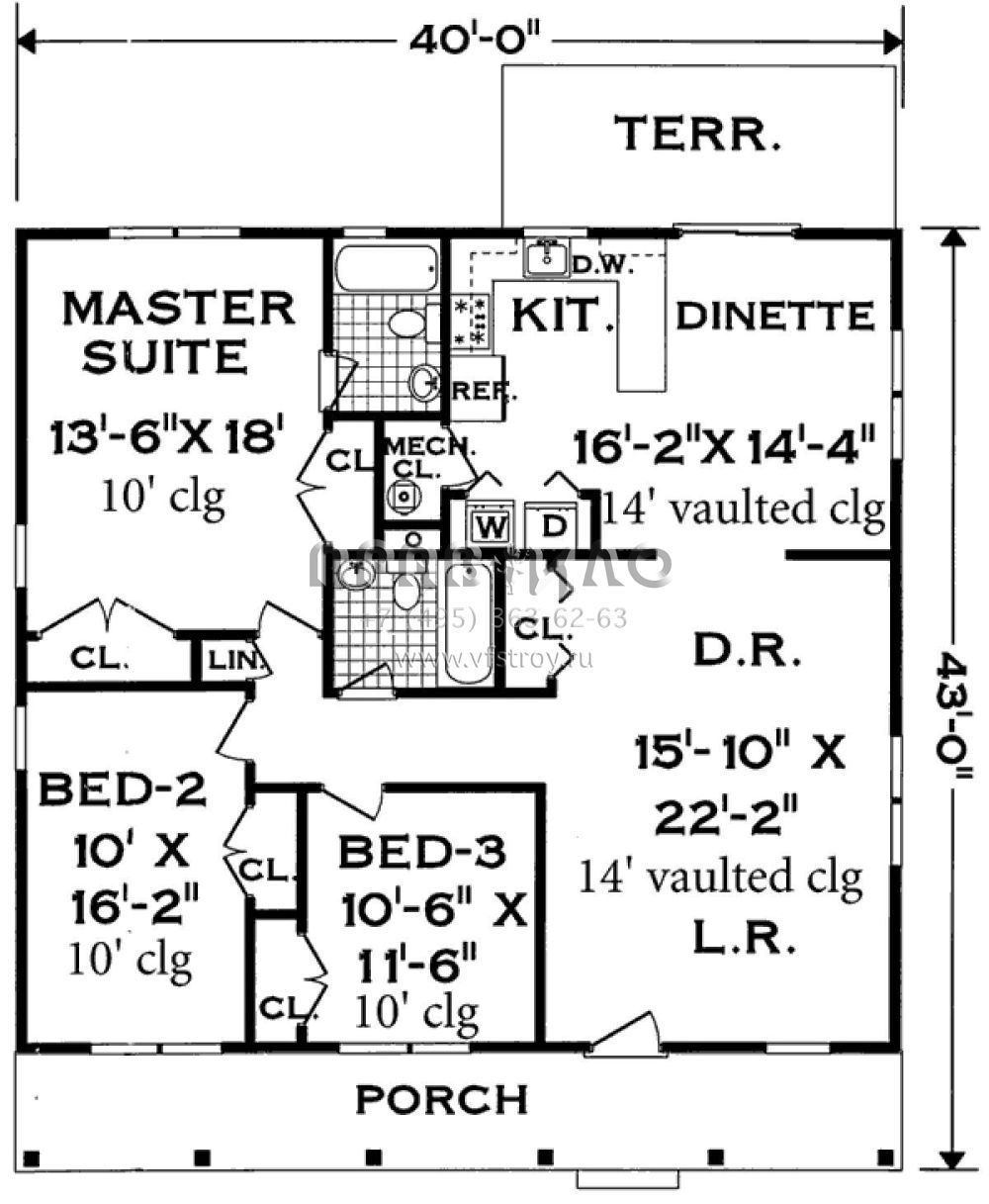 Проект одноэтажного дома без гаража в стиле Ранчо S5-139 (033-00050)
