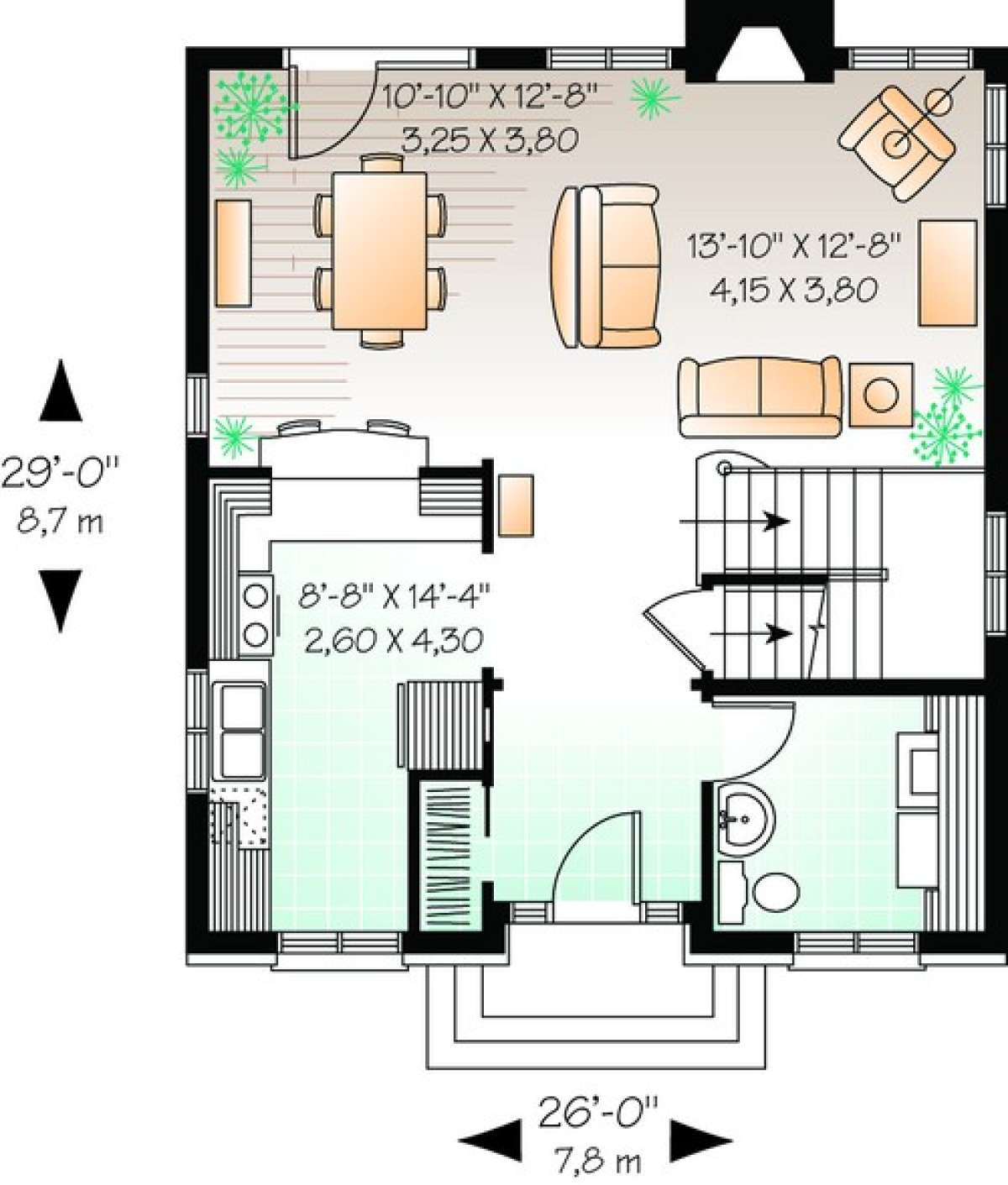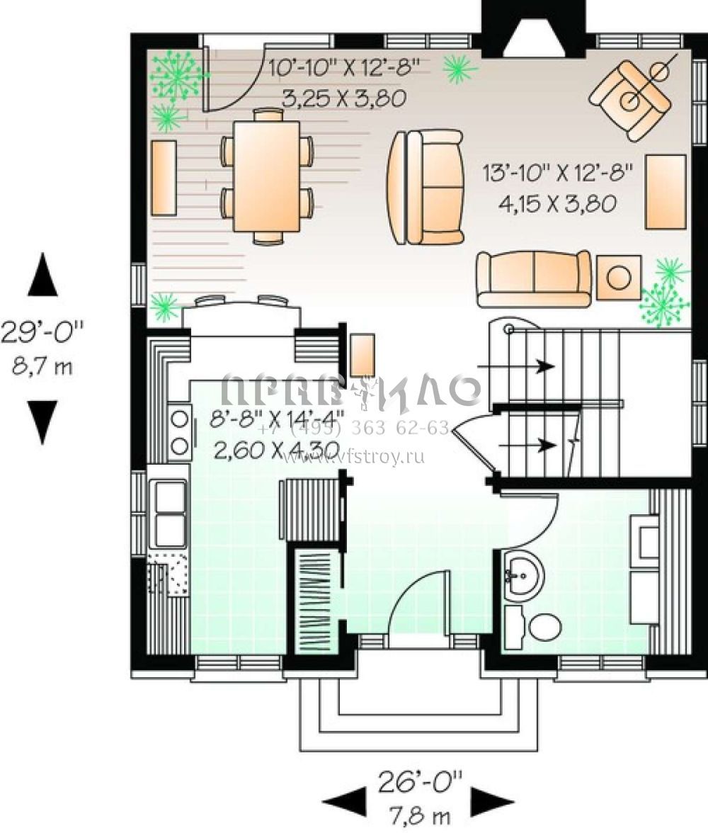 S5-139 (034-00450) Это иностранный проект, для которого требуется адаптация под нормы, действующие в Российской Федерации. Вы видите проект дома в стиле Ранчо. В этом доме сочетаются черты сельской постройки и аскетичность лофта. Внутри жильцы смогут проводить время с максимальным комфортом. Обратим внимание, что сейчас на планировках все размеры представлены в футах. Для перевода в метры вам необходимо значение в футах умножить на 0,3048.