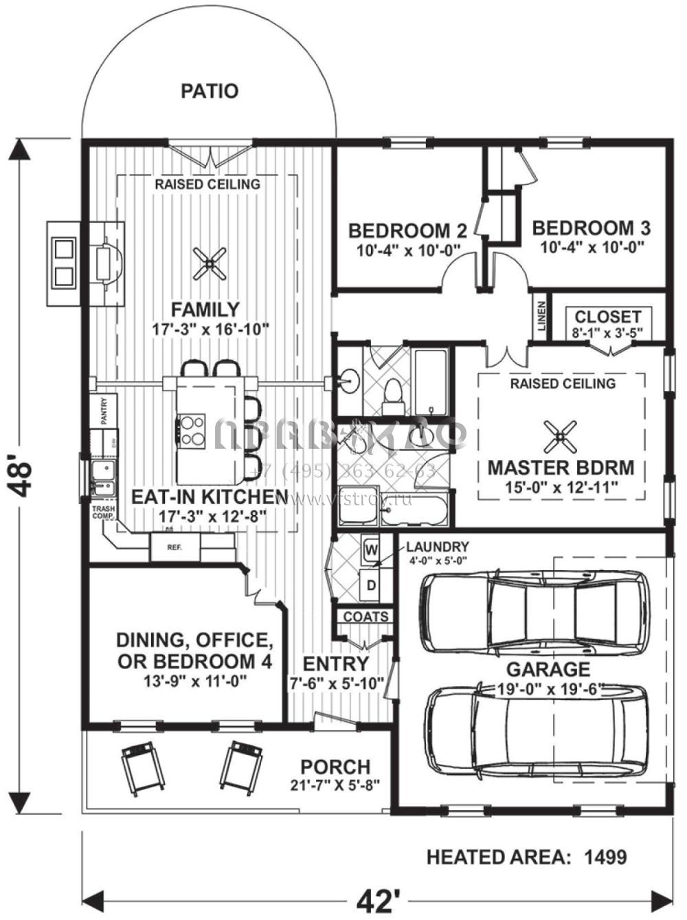 Проект одноэтажного дома с гаражом на две машины в американском стиле S5-139 (036-00250)
