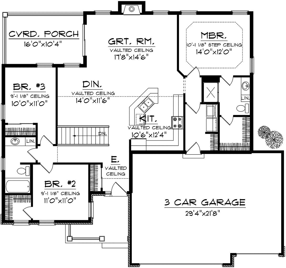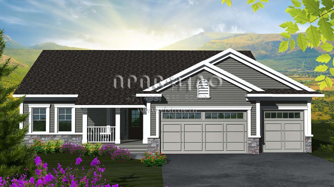 Проект одноэтажного дома с гаражом на три и более машин в американском стиле S5-139 (1020-00204)