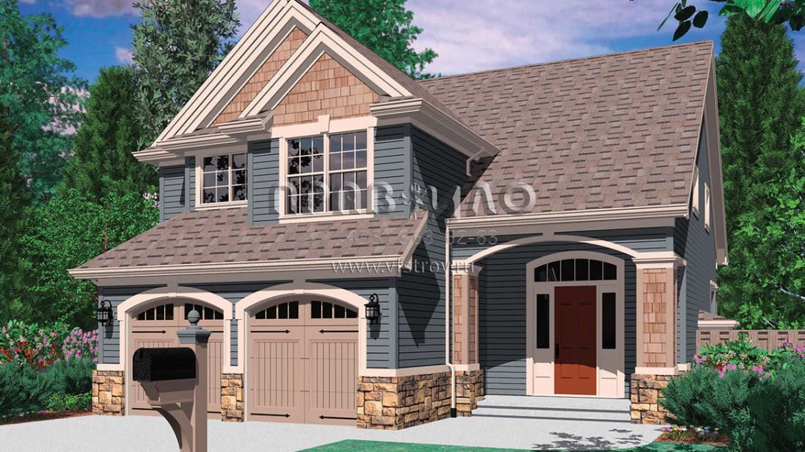 Проект двухэтажного дома с гаражом на две машины в стиле Ранчо S5-139 (2559-00243)