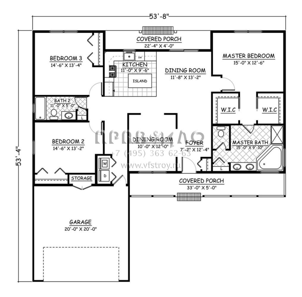 Проект одноэтажного дома с гаражом на две машины в стиле Ранчо S5-139 (526-00022)