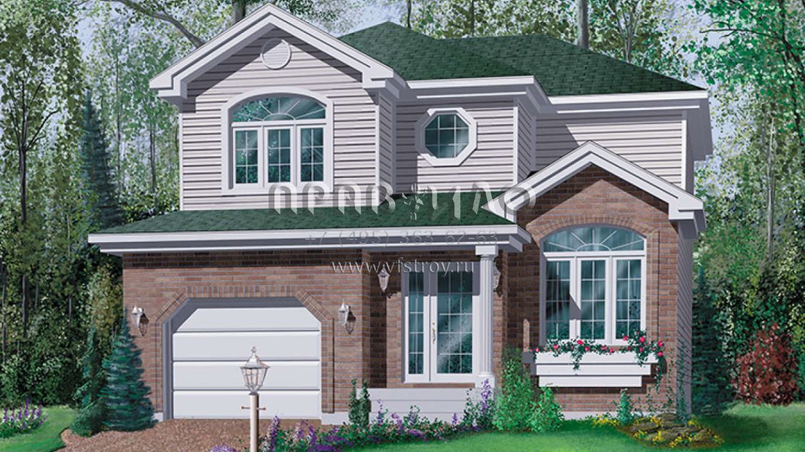Проект двухэтажного дома с гаражом на одну машину в стиле Ранчо S5-139 (6146-00110)