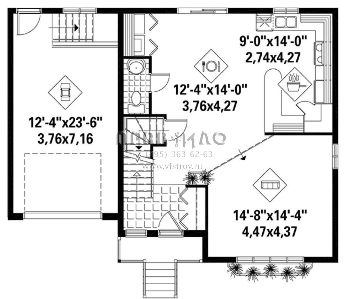 Проект двухэтажного дома с гаражом на одну машину в стиле Ранчо S5-139 (6146-00245)