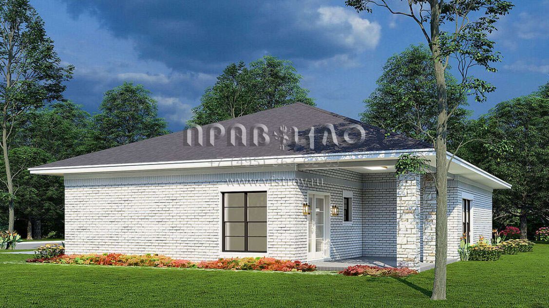 Большая площадь участка позволяет выбрать одноэтажный проект дома, особенно если в семье есть пожилые люди, инвалиды или маленькие дети.