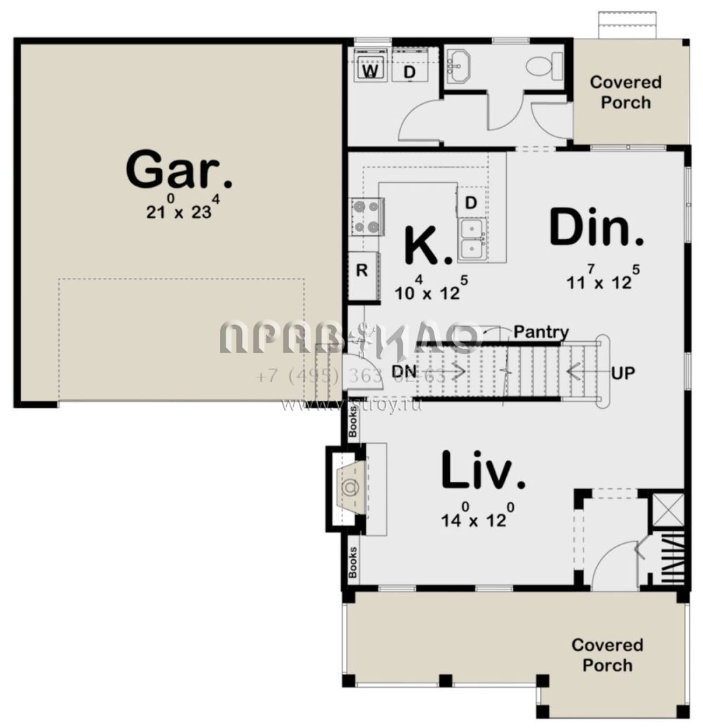 S5-139 (963-00076) Это иностранный проект, для которого требуется адаптация под нормы, действующие в Российской Федерации. Вы видите проект дома в стиле Ранчо. В этом доме сочетаются черты сельской постройки и аскетичность лофта. Внутри жильцы смогут проводить время с максимальным комфортом. Обратим внимание, что сейчас на планировках все размеры представлены в футах. Для перевода в метры вам необходимо значение в футах умножить на 0,3048.