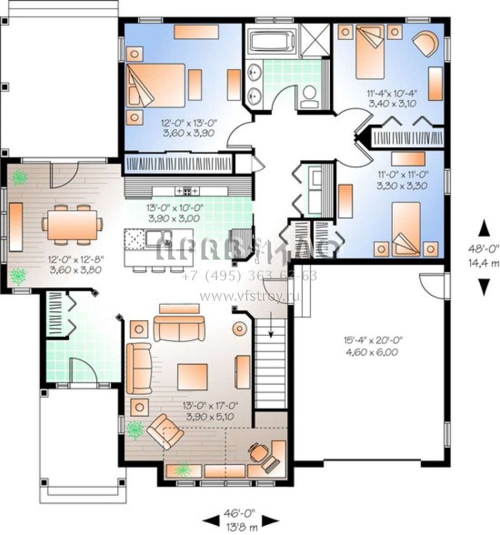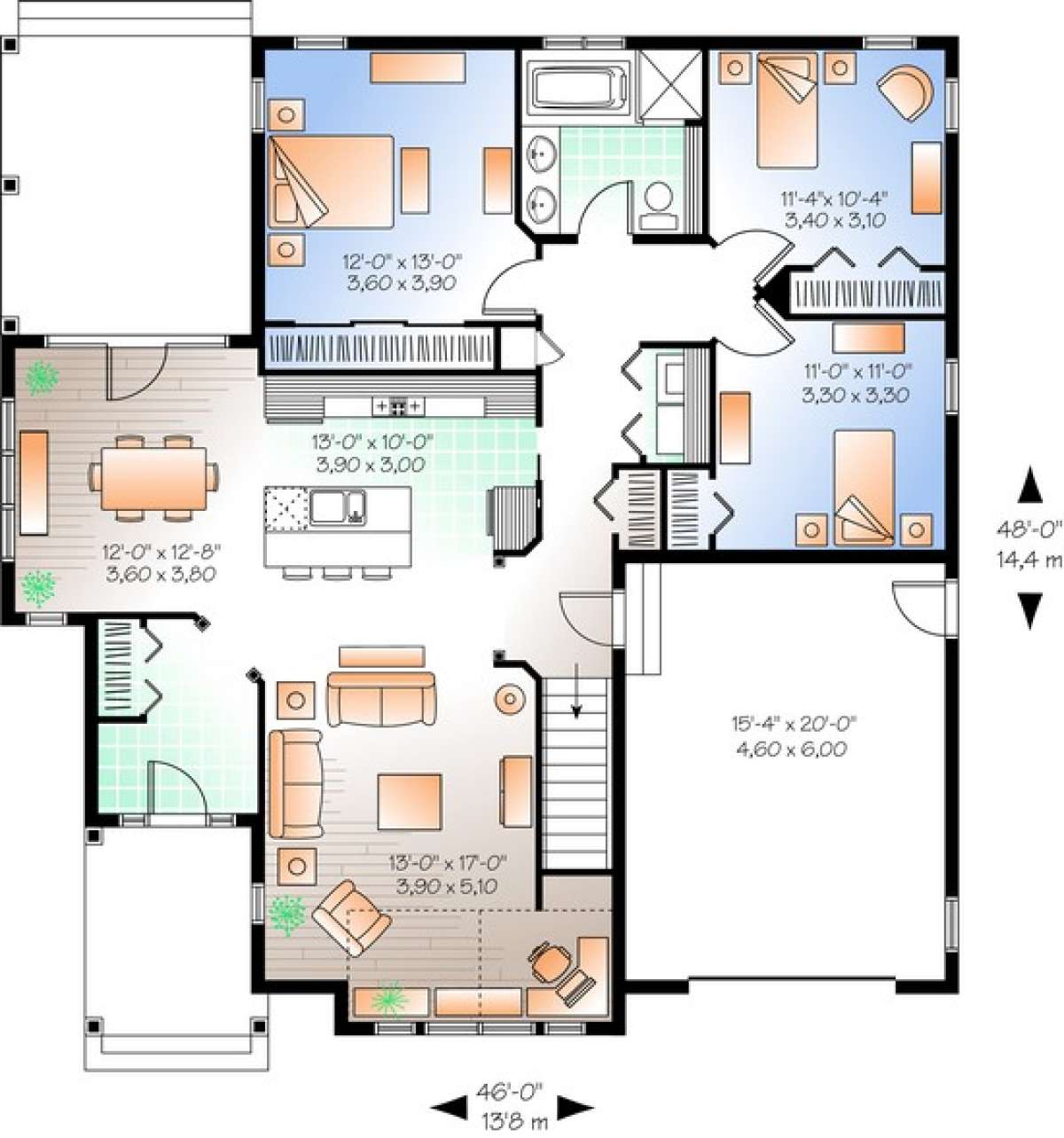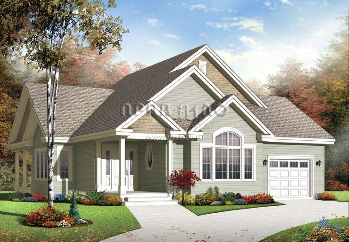 Проект одноэтажного дома с гаражом на одну машину в стиле Ранчо S5-140 (034-00973)