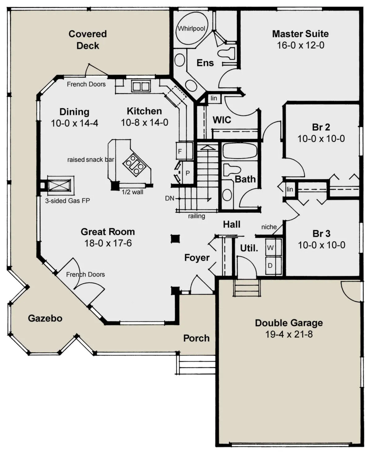 S5-140 (2699-00023) Это иностранный проект, для которого требуется адаптация под нормы, действующие в Российской Федерации. Вы видите проект дома в стиле Ранчо. В этом доме сочетаются черты сельской постройки и аскетичность лофта. Внутри жильцы смогут проводить время с максимальным комфортом. Обратим внимание, что сейчас на планировках все размеры представлены в футах. Для перевода в метры вам необходимо значение в футах умножить на 0,3048.