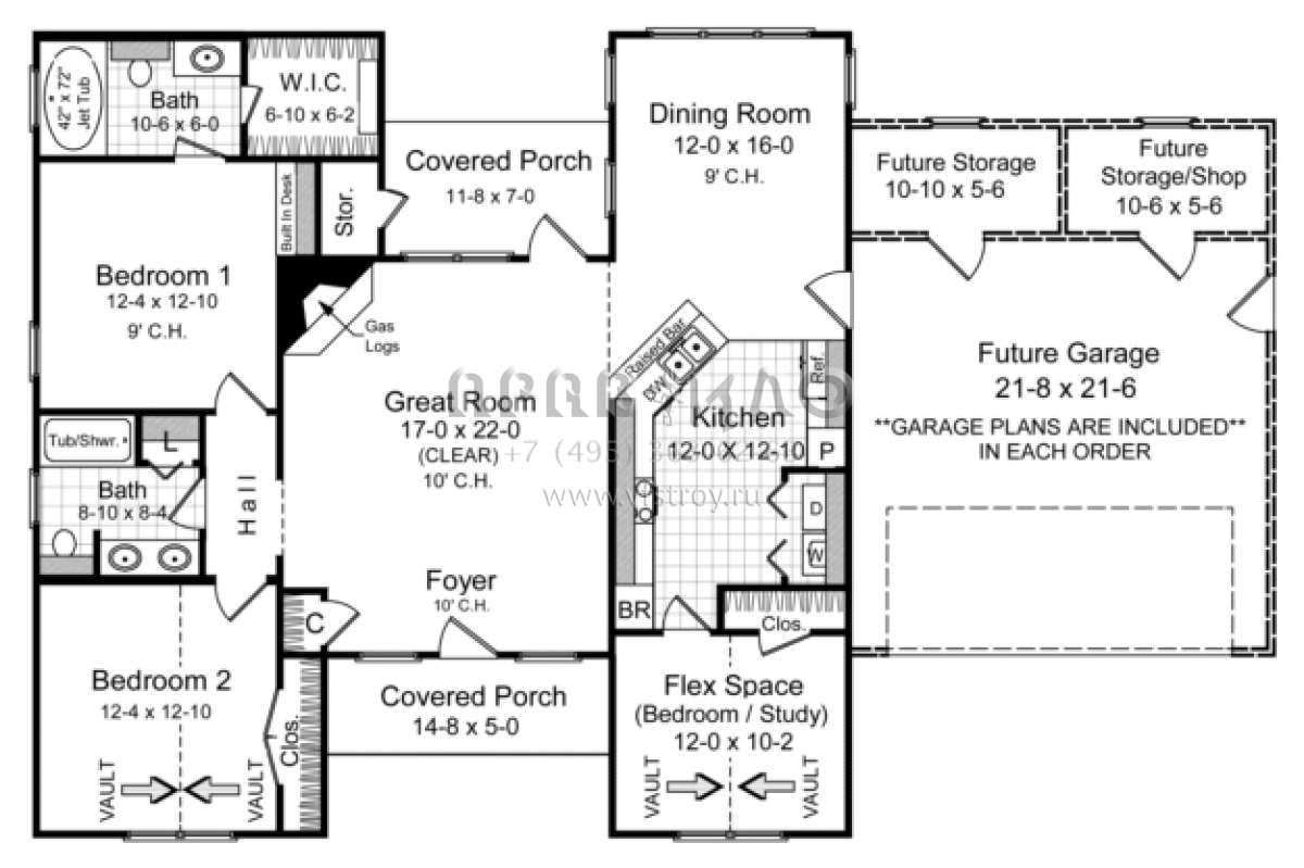 Проект одноэтажного дома с гаражом на две машины в стиле Ранчо S5-140 (348-00022)