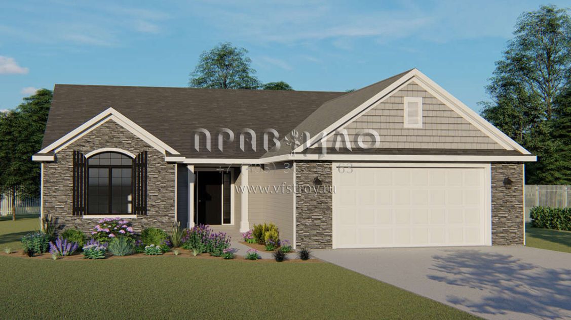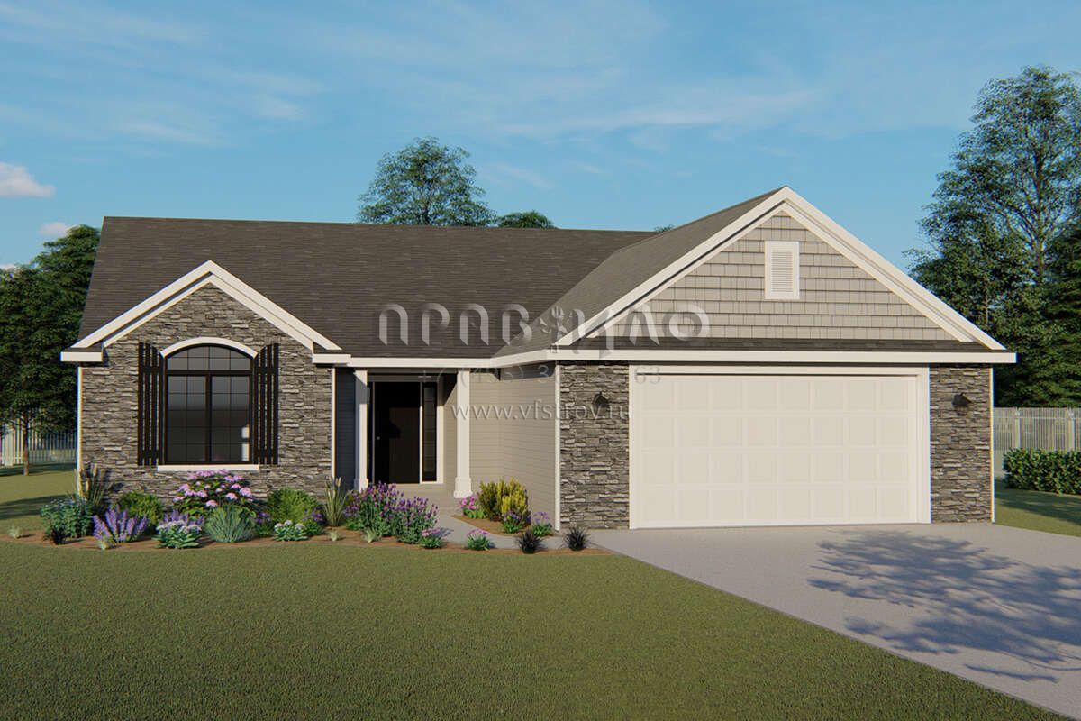 Проект одноэтажного дома с гаражом на две машины в стиле Ранчо S5-140 (5032-00037)